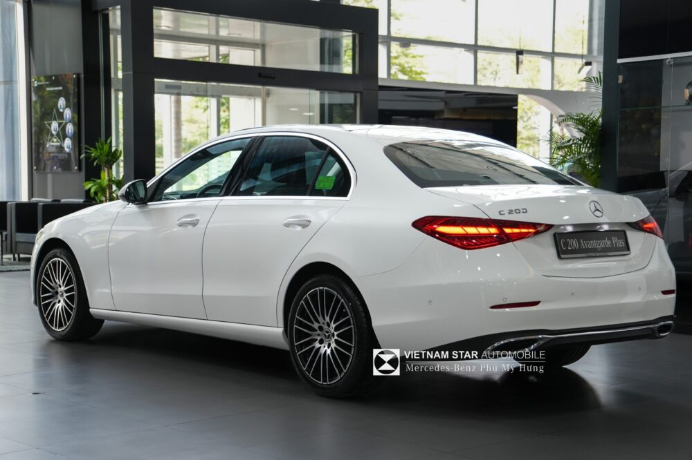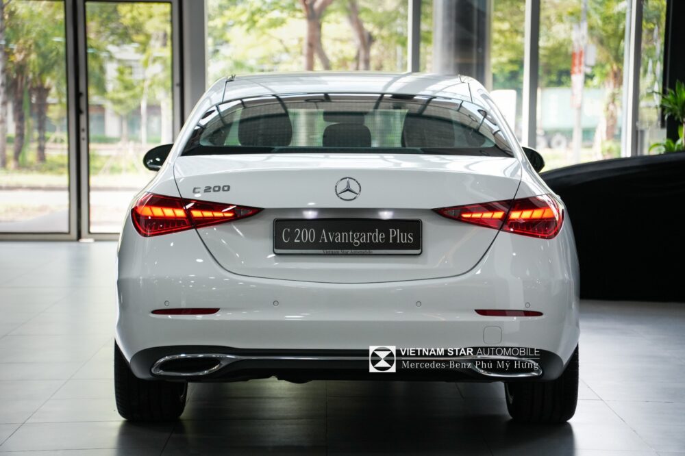 Phía sau Mercedes-Benz C 200 Avantgarde Plus thay đổi toàn bộ so với đời cũ. Điển hình như thanh crom nằm ngang đuôi xe nay đã bị loại bỏ hoàn toàn, mang đến vẻ đẹp mềm mại đúng chuẩn sedan hạng sang. Cặp đèn hậu full LED thay đổi tạo hình, mang tính thẩm mỹ, tinh tế và cuốn hút hơn hẳn mô hình mà nó thay thế. Cặp ống xả kép viền crom thể thao cùng chiều rộng cở sở cải thiện, giúp gia tăng tính linh hoạt cũng như cảm giác động cho xe ngay cả khi không di chuyển.