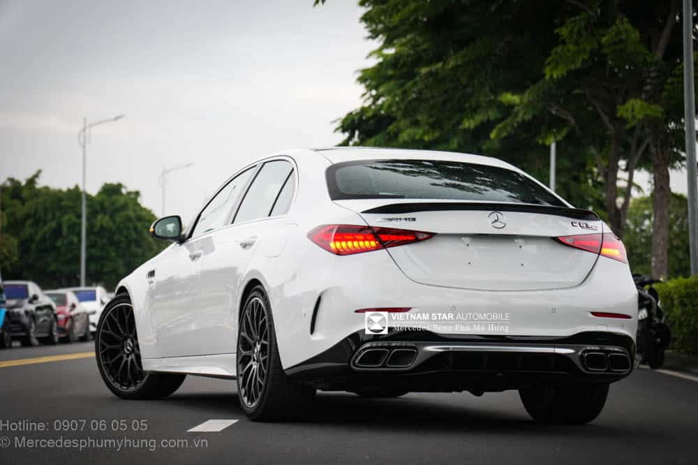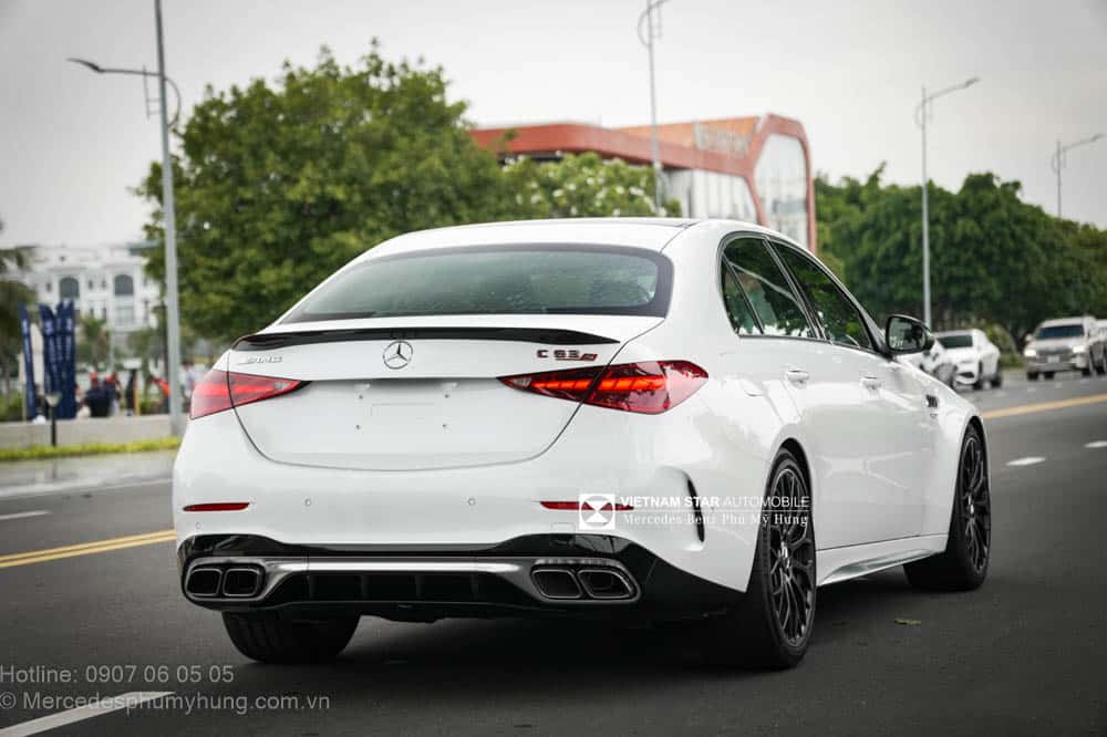 Mercedes-AMG C63 S E PERFORMANCE tiếp tục gây ấn tượng với thiết kế đuôi xe thể thao và tinh tế.