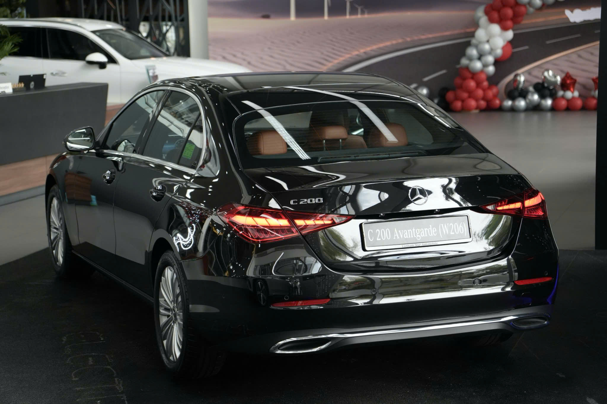 Điểm nhấn độc đáo là đèn chào mừng lần đầu xuất hiện trên C200 Avantgarde, chiếu logo Mercedes-Benz xuống mặt đường khi mở cửa – chi tiết nhỏ nhưng nâng tầm nhận diện thương hiệu. Dù vậy, cụm đèn chưa được trang bị công nghệ Digital Light như trên C300 AMG Line, điều này có thể khiến một số tín đồ công nghệ tiếc nuối.