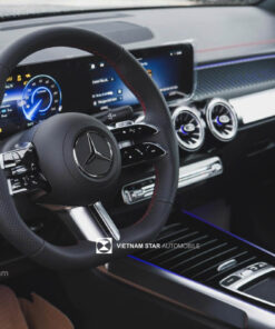 Ghế người lái và hành khách phía trước được nâng cấp với thiết kế thể thao AMG Line, chỉnh điện với bộ nhớ 3 vị trí và hỗ trợ tựa lưng, mang lại sự thoải mái tối đa. Hàng ghế thứ 3 cho 2 người ngồi, cùng tựa lưng hàng ghế thứ 2 gập được, tăng tính linh hoạt cho gia đình 5+2 chỗ. Hệ thống đèn viền trang trí nội thất với 64 màu tùy chọn được tinh chỉnh để phù hợp với các tông màu nội thất mới, trong khi hệ thống điều hòa tự động THERMOTRONIC với 2 vùng riêng biệt đảm bảo sự thoải mái cho mọi hành khách. Chức năng sạc không dây cho hàng ghế trước và cổng kết nối USB Type-C cho cả hàng trước và sau mang lại sự tiện lợi trong thời đại kỹ thuật số.