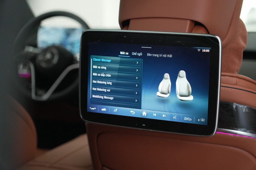 Ngoài màn hình MBUX ở phía trước, các hành khách ở hàng ghế sau của S450 4MATIC có thể sử dụng 2 màn hình MBUX High-end với kích thước 11.6-inch được trang bị ở hàng ghế sau. Hệ thống âm thanh Burmester với 15 loa công suất 710W, mang đến những trải nghiệm âm nhạc thú vị cho người ngồi trên xe.