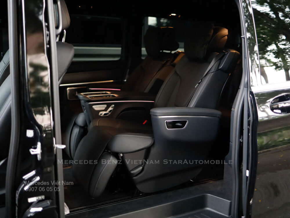 Hãy hình dung bạn đang đón đối tác tại sân bay Tân Sơn Nhất, Mercedes-Benz V300 AMG với ngoại thất đen Obsidian Black Metallic lấp lánh dưới ánh nắng, tạo ấn tượng mạnh mẽ ngay từ cái nhìn đầu tiên. Đây không chỉ là một chiếc Mercedes 7 chỗ hạng sang mà còn là công cụ hỗ trợ kinh doanh, giúp bạn khẳng định vị thế trong mọi cuộc gặp gỡ. Với khoảng sáng gầm 149 mm và hệ thống treo thể thao, chiếc xe mang lại sự thoải mái trên đường dài, từ TP.HCM đến Đà Nẵng, mà không đánh mất sự sang trọng.