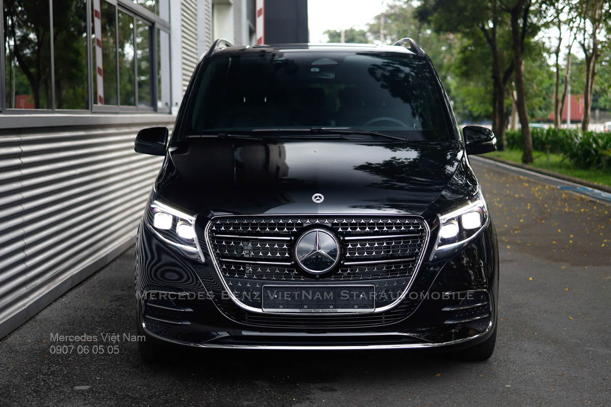 Mercedes V300 AMG toát lên vẻ ngoài mạnh mẽ, quyền lực nhưng vẫn giữ được sự tinh tế đặc trưng của thương hiệu Mercedes-Benz, khiến nó trở thành lựa chọn hàng đầu cho các doanh nhân Việt Nam. Với gói AMG Line lưới tản nhiệt gồm nhiều logo Mercedes nhỏ sang trọng kết hợp logo ngôi sao ba cánh lớn đặt ở trung tâm tạo cảm giác hầm hố, chiếc xe như một tuyên ngôn về sự thành công, nổi bật giữa dòng xe cộ đô thị. Cụm đèn pha MULTIBEAM LED thông minh, với khả năng điều chỉnh tự động theo điều kiện đường, không chỉ mang lại tầm nhìn rõ nét mà còn tạo hiệu ứng ánh sáng cuốn hút khi di chuyển ban đêm trên những con đường như Lê Duẩn ở Hà Nội hay Nguyễn Huệ ở Sài Gòn.