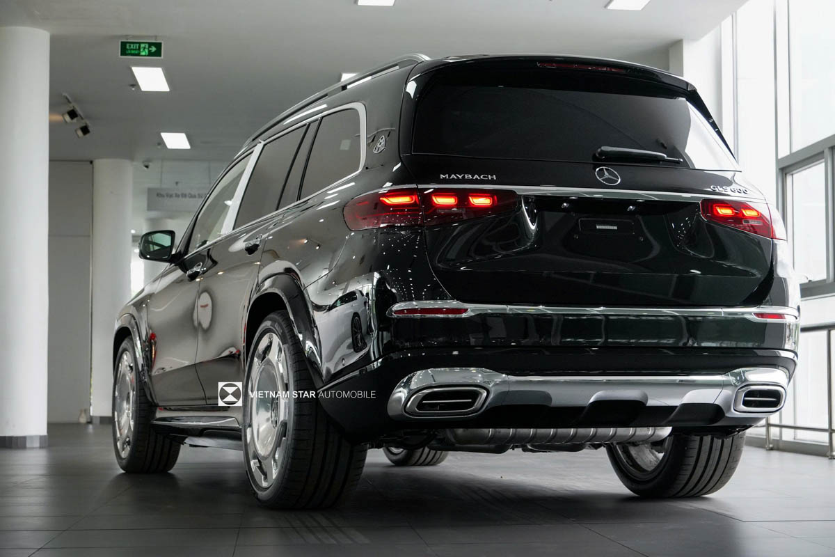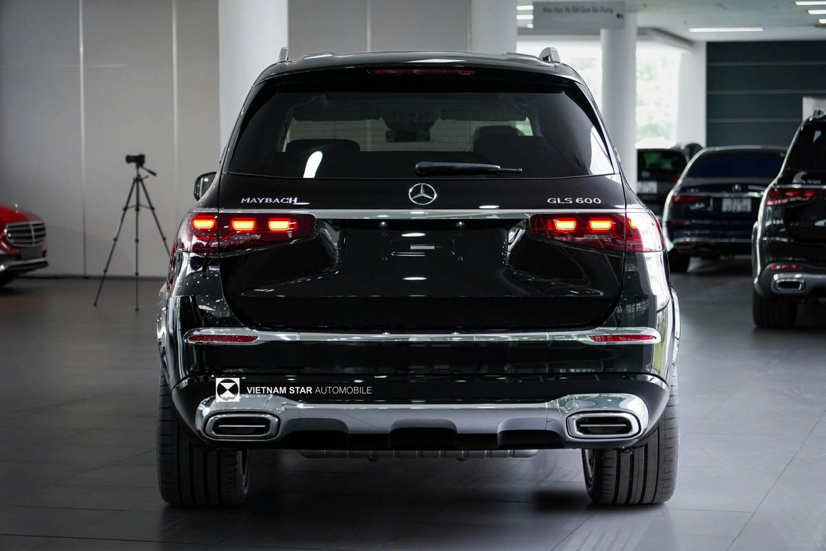 Phần đuôi xe của Mercedes Maybach GLS 600 là một kiệt tác của sự hiện đại, với cụm đèn hậu LED thiết kế 3 khối ngang mới tạo nên đường nét thanh thoát và mạnh mẽ. Đèn phanh thứ ba công nghệ LED, tích hợp trên cánh lướt gió, không chỉ tăng tính an toàn mà còn thêm điểm nhấn thẩm mỹ khi lăn bánh vào buổi tối. Dải chrome nối liền hai đèn hậu, kết hợp với cụm ống xả kép mạ chrome thiết kế thanh ngang đặc trưng của Maybach, mang lại sự cân bằng giữa thể thao và quý phái. Logo Maybach được đặt trang trọng phía trên, phản chiếu ánh sáng như một dấu ấn hoàng gia. Một khách hàng tại Hà Nội chia sẻ: “Đèn hậu LED 3 khối ngang trông rất ấn tượng khi tôi đỗ xe tại khu vực Hoàn Kiếm vào tối qua – mọi người đều ngoái nhìn!”
