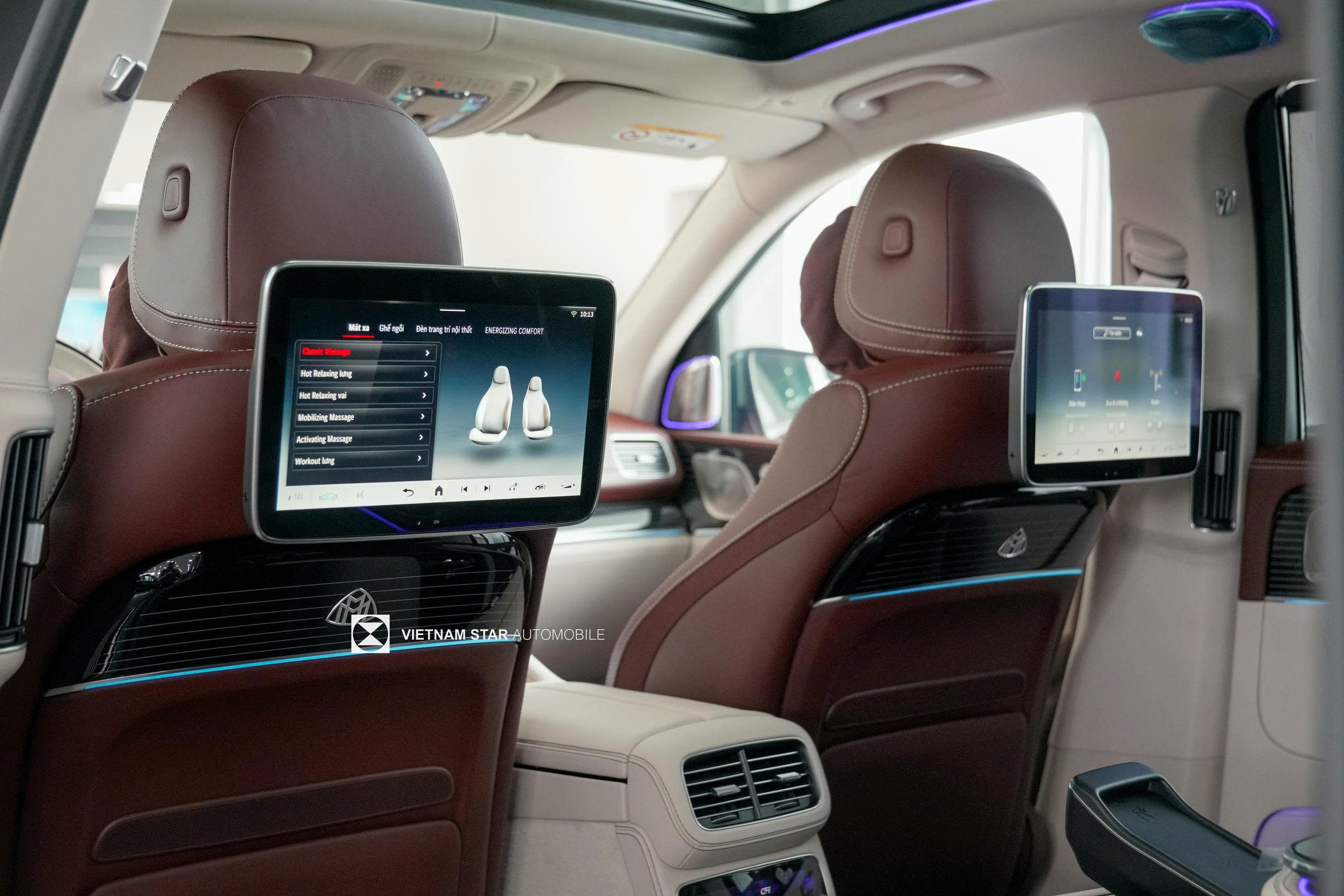 Về giải trí, hệ thống âm thanh Burmester® high-end 3D với 29 loa và công suất 1.610 watts mang đến trải nghiệm như trong một buổi hòa nhạc sống, với âm thanh vòm bao quanh từng ghế ngồi. Hàng ghế sau được trang bị hai màn hình 11.6 inch và tai nghe không dây, cho phép hành khách thưởng thức phim hoặc làm việc trong không gian riêng tư. Hệ thống điều hòa 4 vùng THERMOTRONIC, kết hợp với ENERGIZING AIR CONTROL, loại bỏ bụi mịn PM2.5 và khử mùi, tạo cảm giác như đang hít thở không khí trong lành tại một khu nghỉ dưỡng cao cấp, đặc biệt quan trọng trong mùa khô bụi tại Hà Nội.
