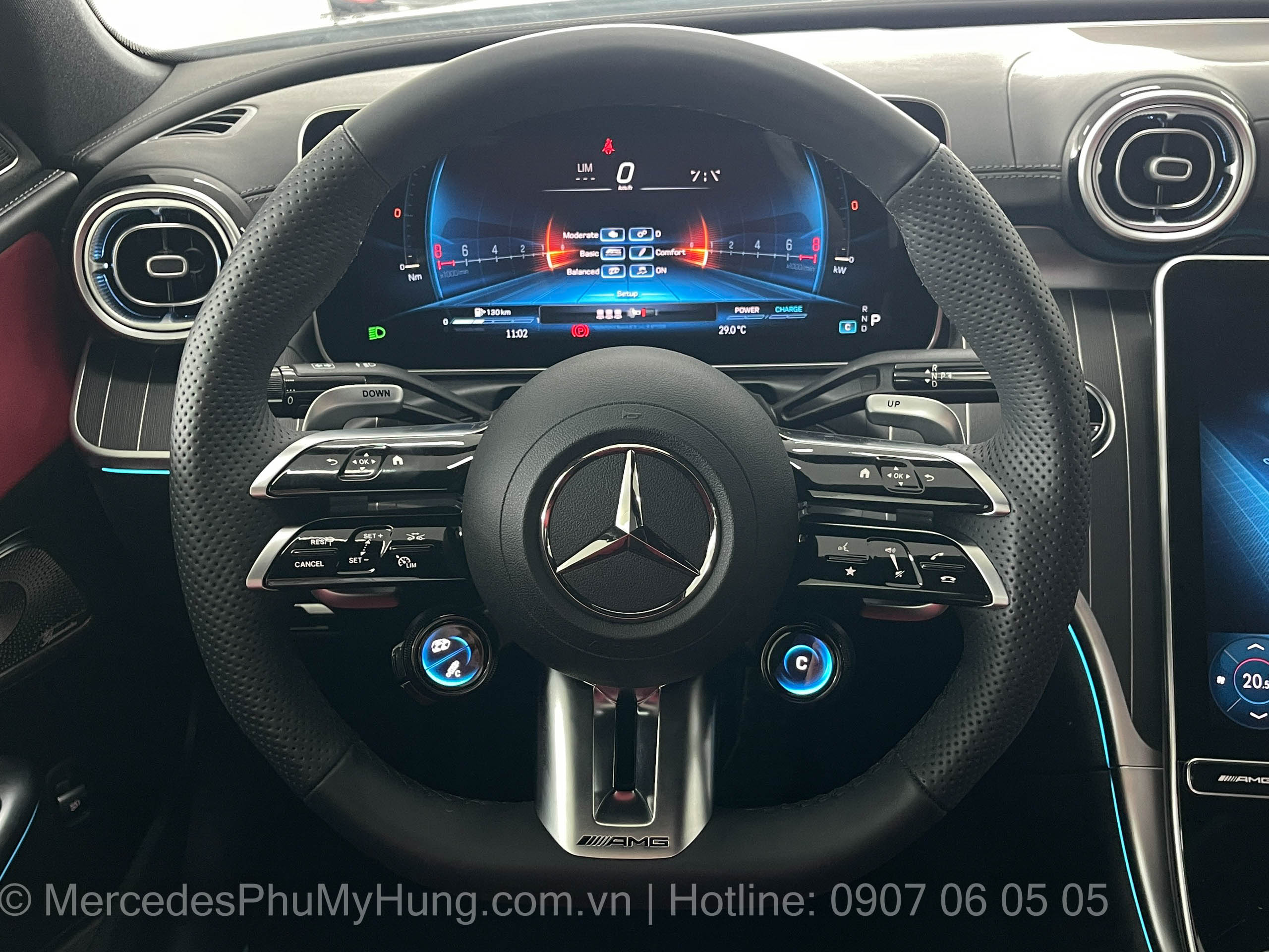 - Vô-lăng AMG thể thao: Bọc da Nappa, tích hợp phím điều khiển cảm ứng, mang lại trải nghiệm lái đầy phấn khích.