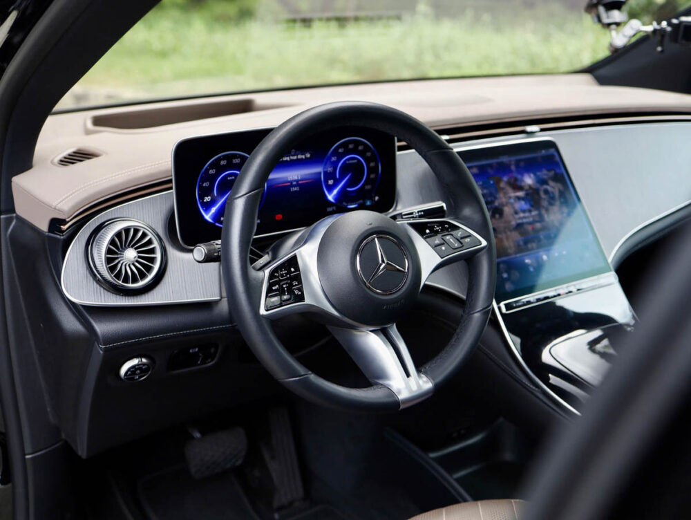 Gầm cao 180 mm (điều chỉnh lên 200 mm khi cần) giúp xe dễ dàng vượt qua những con phố ngập nước ở Hà Nội hay các đoạn đường gồ ghề ở ngoại ô. Mâm xe AMG 21 inch, với lốp trước 255/40R21 và lốp sau 285/35R21, không chỉ tăng tính thẩm mỹ mà còn đảm bảo độ bám đường hoàn hảo. Một khách hàng của tôi, chị Mai – một nhà thiết kế nội thất ở Quận 7, đã chọn EQE SUV cũ vì “nó vừa sang trọng như một chiếc sedan, vừa mạnh mẽ như một chiếc SUV thực thụ”. Với xe cũ, nếu lớp sơn và mâm xe được giữ gìn tốt, bạn khó có thể phân biệt với xe mới. Tại Mercedes Phú Mỹ Hưng, chúng tôi kiểm tra kỹ lưỡng lớp sơn, chrome, và đèn LED để đảm bảo xe giữ được vẻ ngoài hoàn hảo, giúp giá trị bán lại tăng thêm 100–150 triệu đồng.