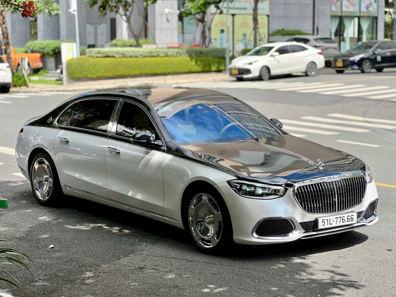 - Lưới tản nhiệt Maybach đặc trưng: Với các thanh dọc mạ chrome và logo Maybach nổi bật, đây là dấu ấn không thể nhầm lẫn, khẳng định đẳng cấp ngay từ ánh nhìn đầu tiên.